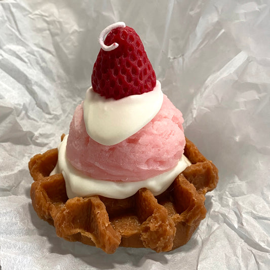 Waffel mit Erdbeereis Kerze