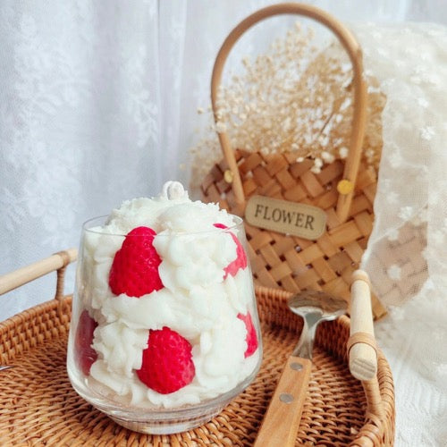 Erdbeerbecher mit Sahne Kerze